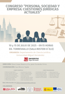 CONGRESO «PERSONA, SOCIEDAD Y EMPRESA: CUESTIONES JURÍDICAS ACTUALES». 10/07/25
